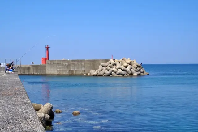 岡垣町の北部に広がる「波津(はつ)海岸」は、その美しさで知られる景勝地です。この海岸の砂は、歩くとキュッキュッと音がする「鳴き砂」として有名で、きれいな砂浜の証とされています。響灘に沈む夕日の名所でもあり、美しい自然景観は玄海国定公園にも指定されています。夏には海水浴場として多くの人で賑わいます。