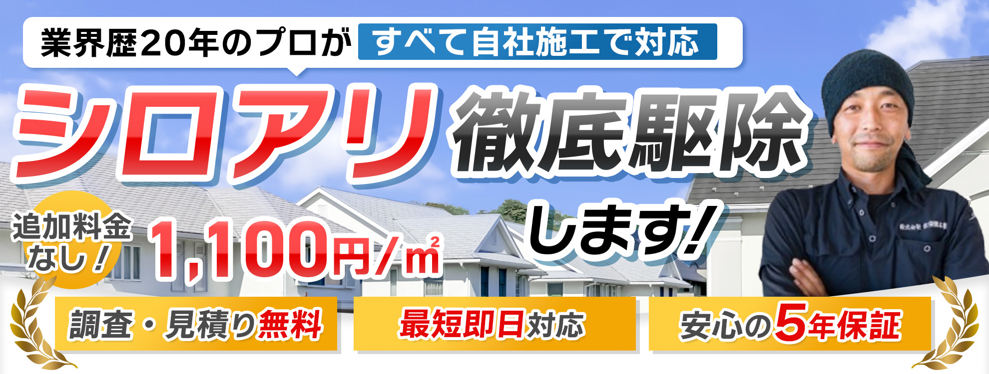 自社施工×メーカー直取引で低価格&高品質を実現!必要費用は全て駆除料金の中に含まれるため追加料金0円!後から高額な請求をすることは一切ございません。
